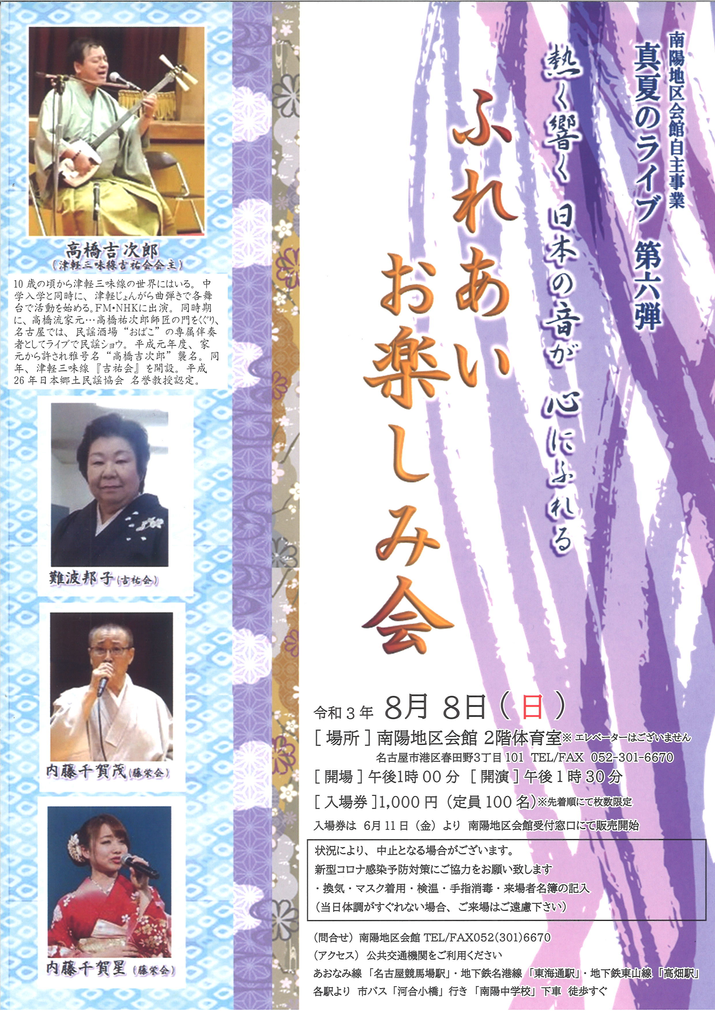 第6回目の開催となる今回、津軽三味線吉祐会会主高橋吉次郎氏の迫力ある津軽三味線の演奏は必見です!