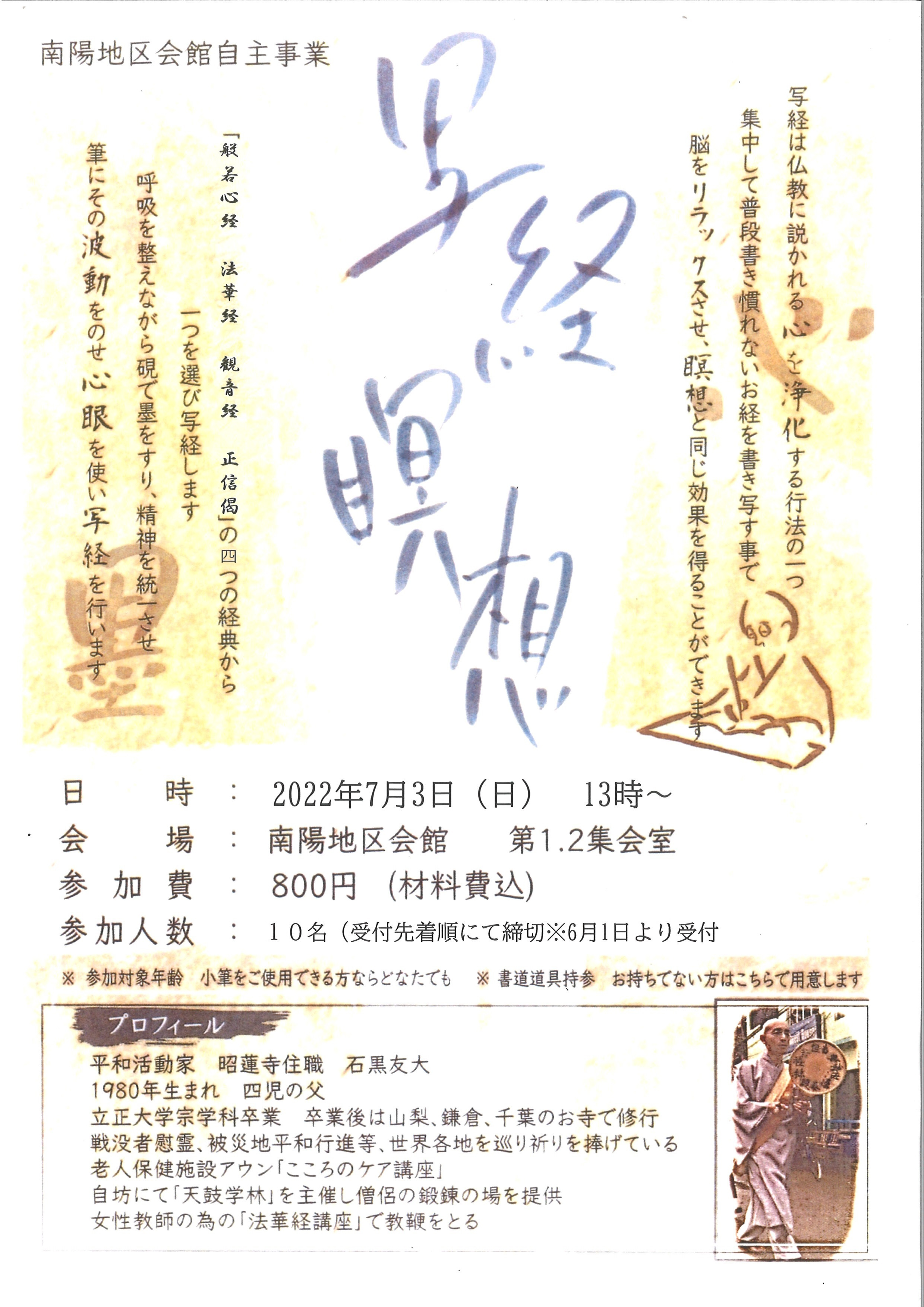 延期になっておりました写経瞑想 開催決定!!