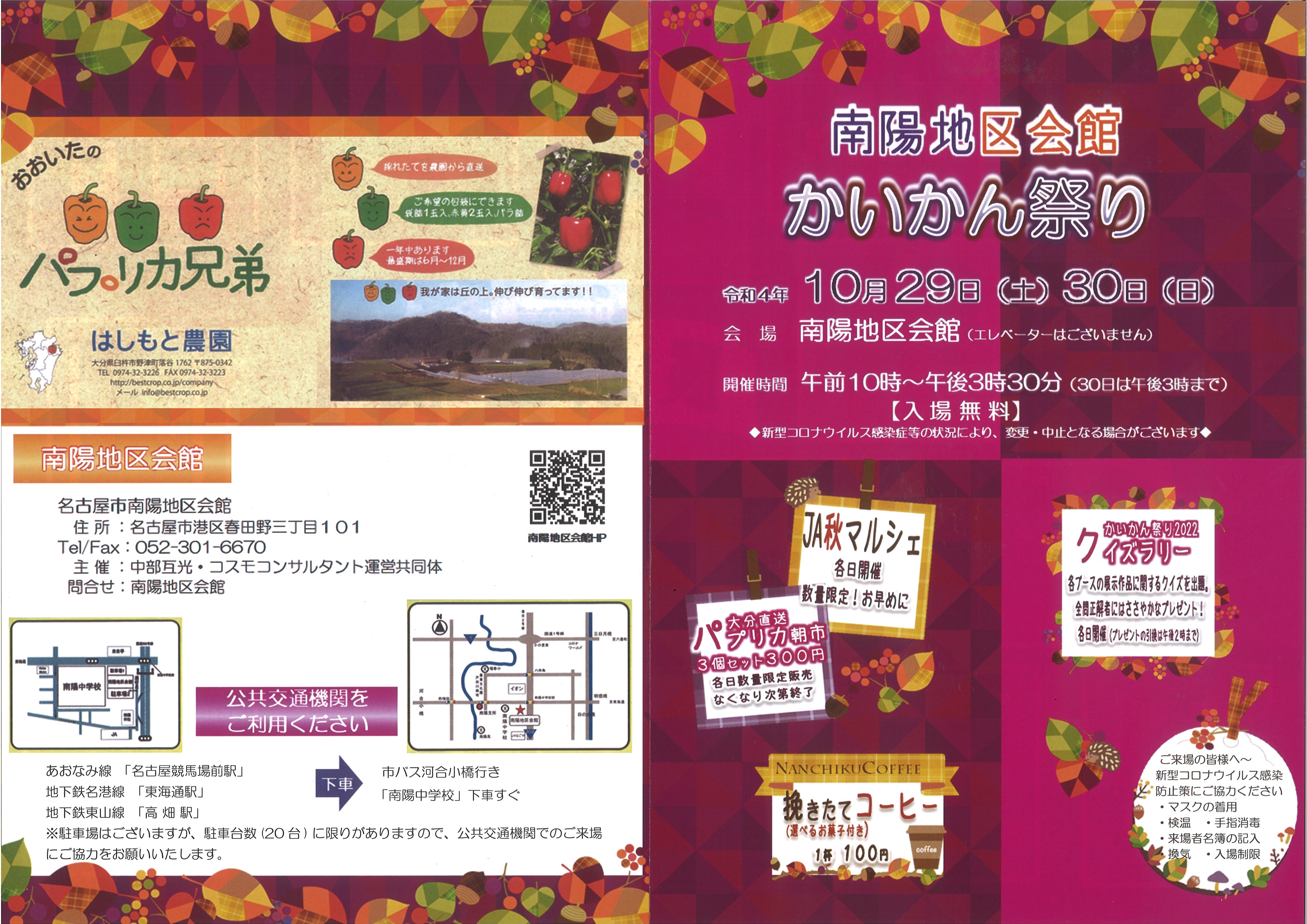 【申 込】 10月2日(水)~南陽地区会館受付窓口にて、参加費をそえてお申込みください