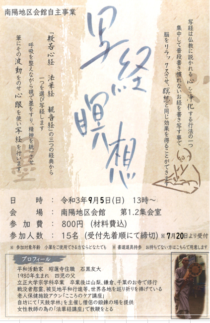 延期になっておりました写経瞑想 開催決定!!
