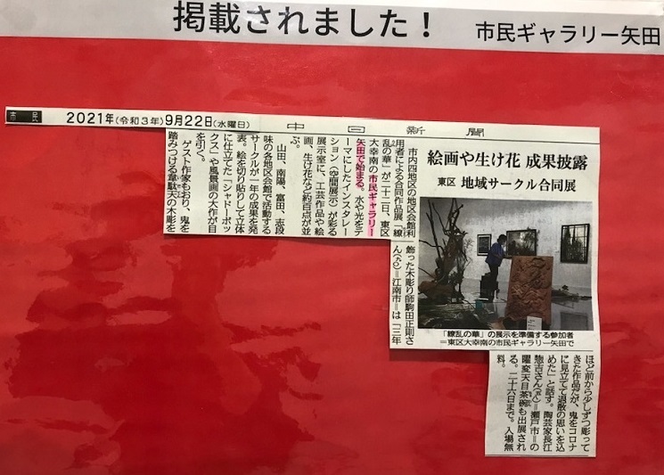 開催初日の中日新聞・朝刊に掲載していただきました→