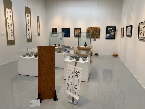 地区会館の書道サークル作品・特別出展の陶器・書作品・絵画作品・写真作品・木彫作品など、盛りだくさんの内容で見応え抜群の展示室です。お洒落なディスプレイも好評をいただいております
