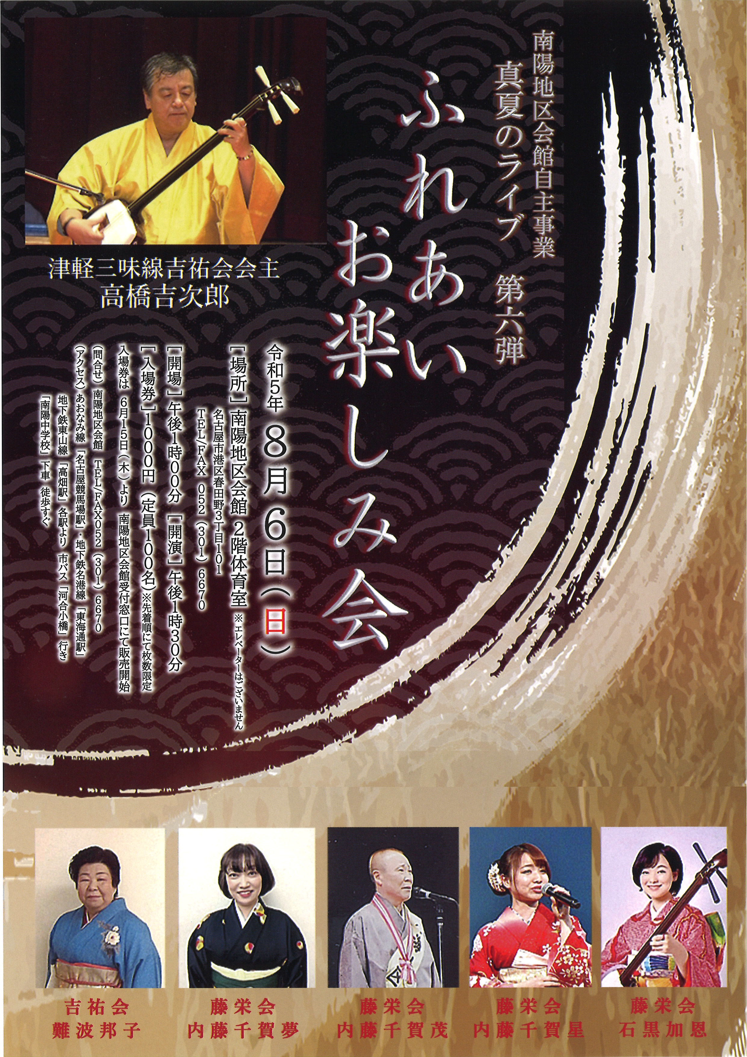 第6回目の開催となる今回、津軽三味線吉祐会会主高橋吉次郎氏の迫力ある津軽三味線の演奏は必見です!