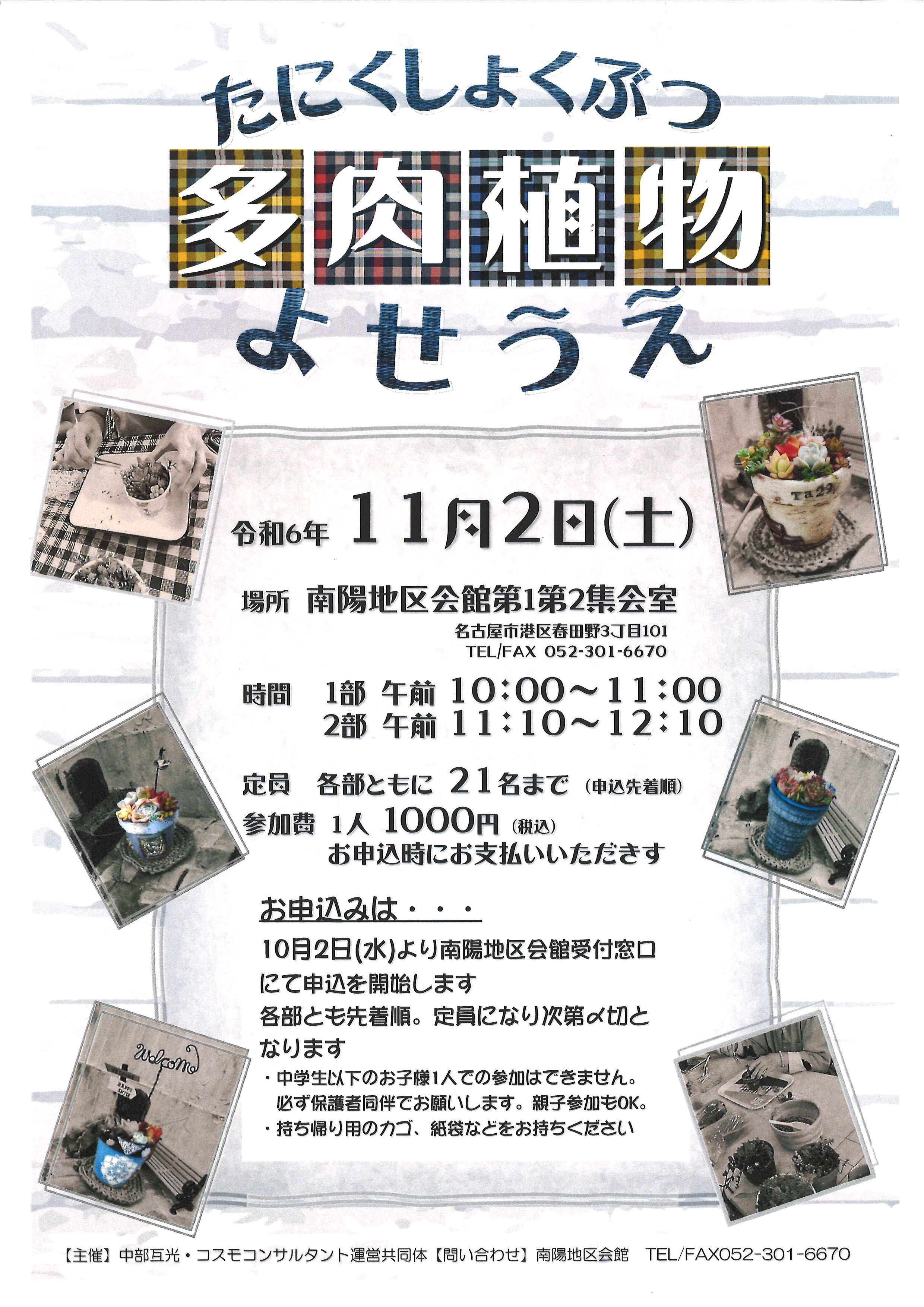 【申 込】 10月2日(水)~南陽地区会館受付窓口にて、参加費をそえてお申込みください