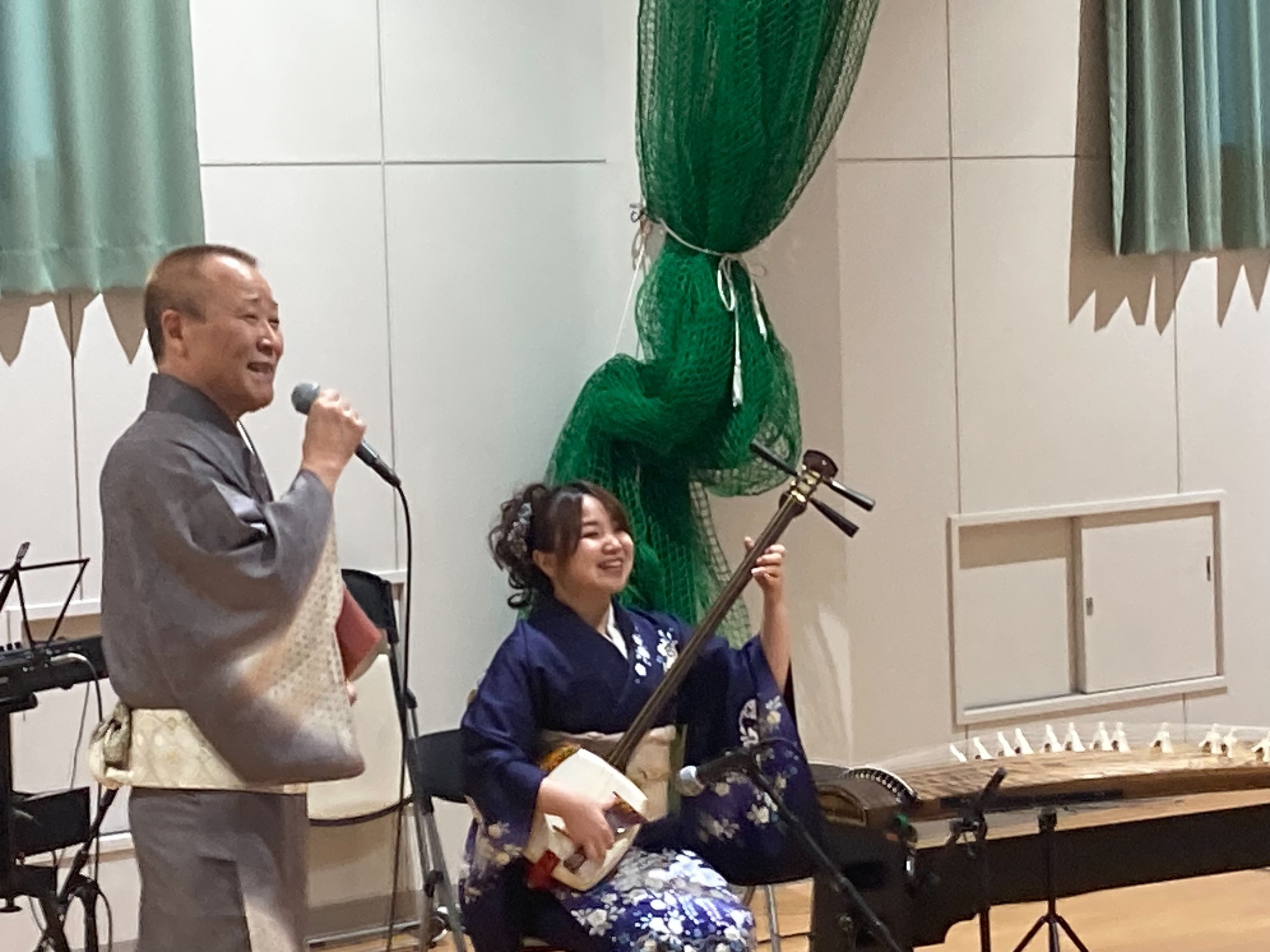 今回はピアノ・フルート・サックスの洋音楽と三味線・民謡の和音楽のコラボコンサート。